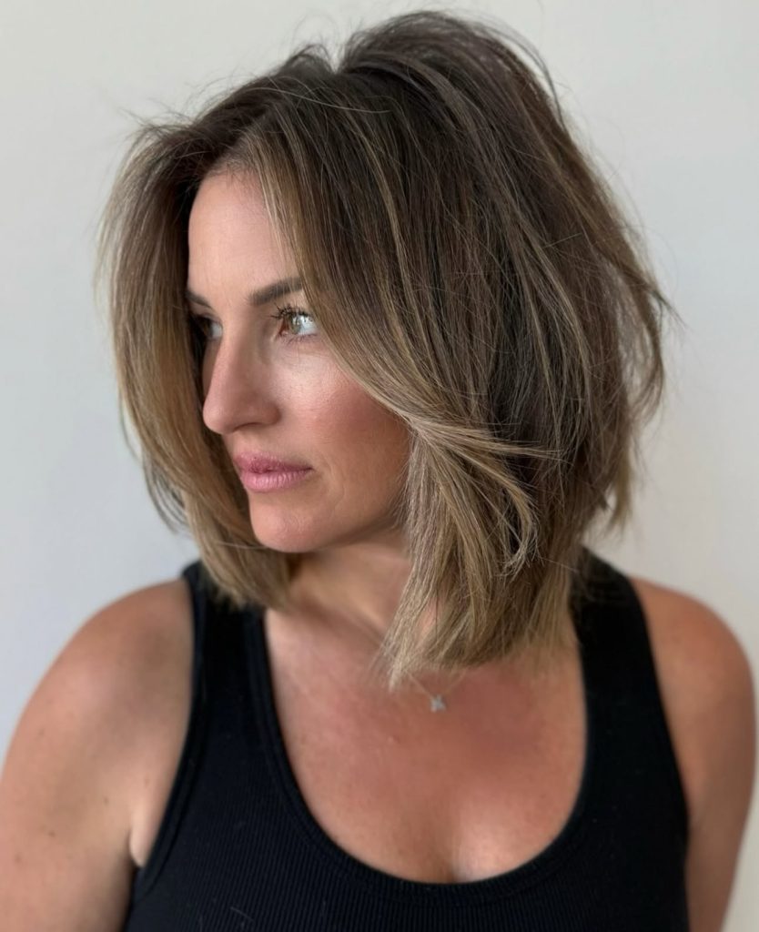 Suitable best on straight to medium length hair this easy to style with a blow-dryer or straighteners. It is notably less wavy or textured than other cuts, conveying a smoother, more polished aesthetic, which is why it can serve as a perfect option to women looking to achieve a casual aesthetic that still feels elegant and work-appropriate in 2025.