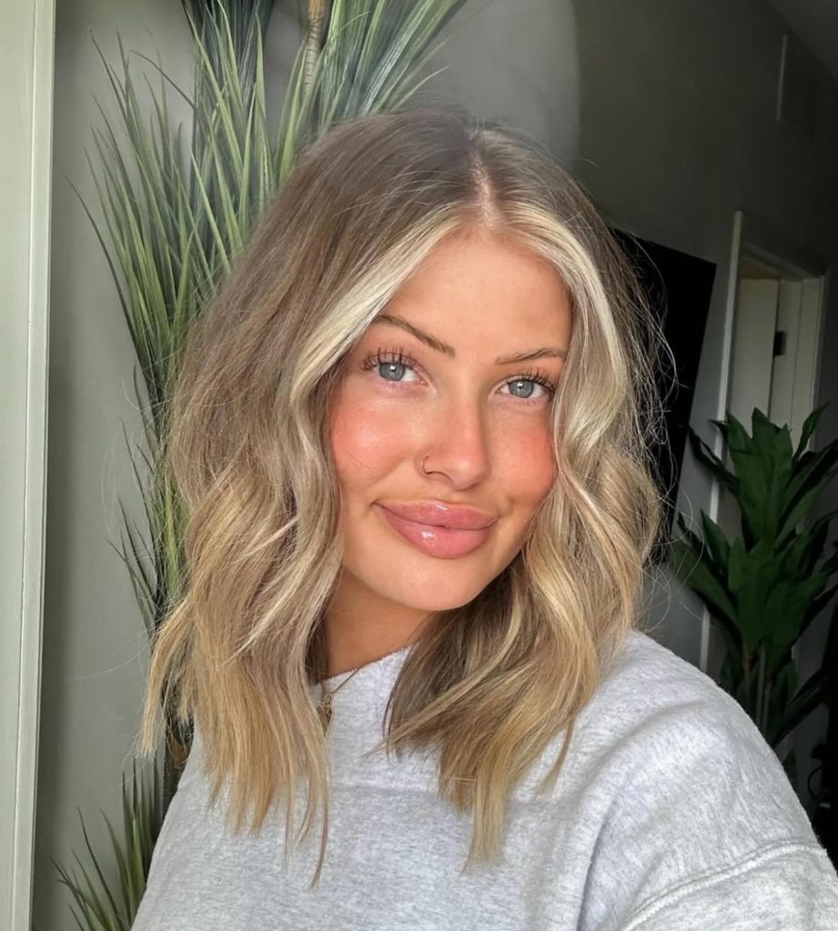 6. Beachy Waves Medium Cut with Bright Highlights