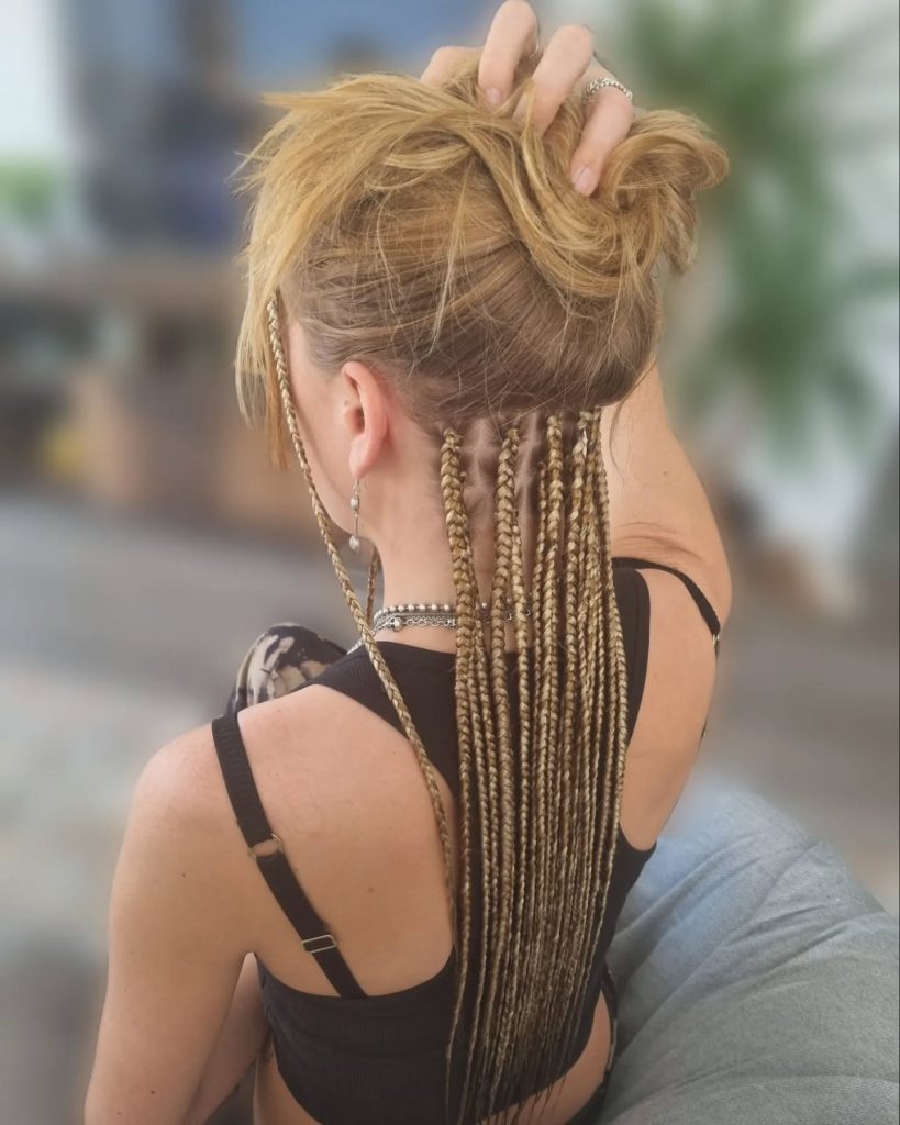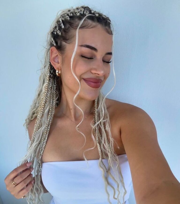 These micro braids are not only modern and stylish, but also have the impressive silver-blonde color that goes well with the style of people who like minimalism. It is a beautiful, slightly feminine, and classy look.:) This hairdo is also amazing for everyday use, as it is relaxed and it can be used for special occasions, showing the versatility of the style.