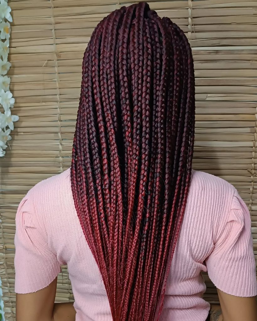These medium-large braids are designed with a deep burgundy ombre effect and are the best accessories for your style. This bright color is best suited for adventurous people who would love to wear something totally different but still appear formal. You can wear this hairstyle with shoulder-length or longer hair, so it can be worn on both casual and partying gatherings.