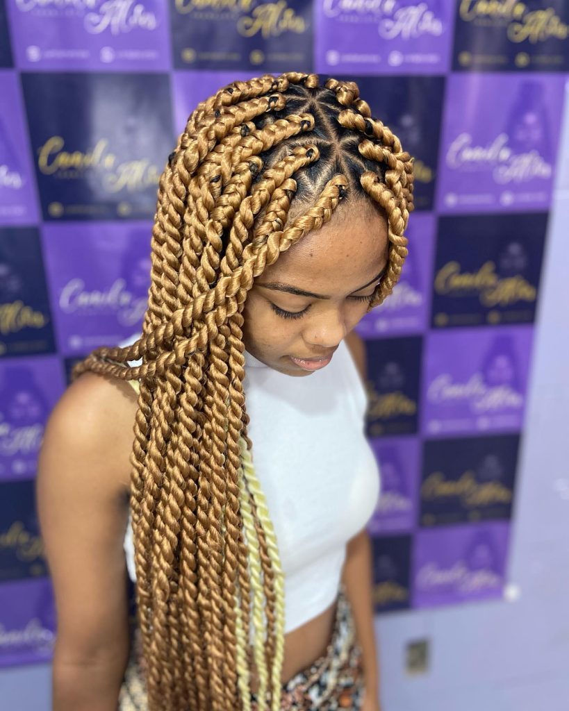 The bohemian twist braids are a stunning combination of laid-back charm and complex creativity. The addition of the golden beads is perfect because they not only bring the warmth but also a sense of sophistication. Therefore, you can wear these twist braids at the beach, in parties, and even daily. Just use small accessories to nullify the diver’s eye effect and highlight the hairstyle’s beauty.