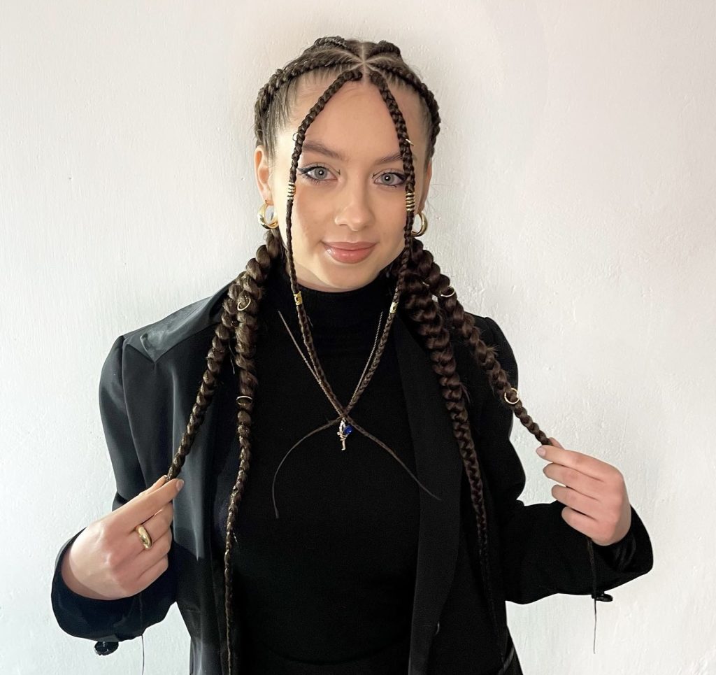 The pastel pink cornrows have been a great way to show off your creativity and personality. The long-haired ends give a free finish to the style, which is why it can be a good choice for casual outfits. The hippy yet casual look is a great way to show off your style and keep up with the current fashion trends.