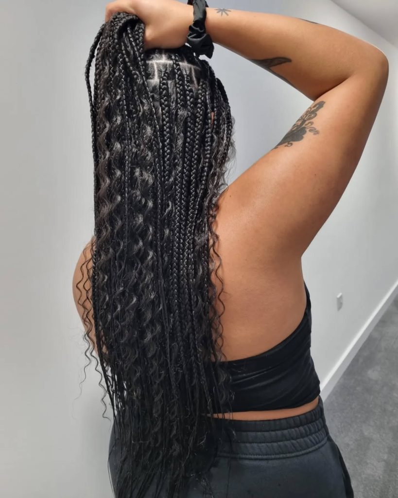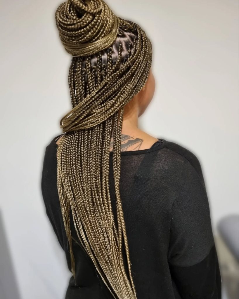 A hairstyle that is both free and cozy is this one. It is the long knotless braids that are not heavy at all and are most suitable for everyday use. The braids are loosely tied so they look freely and cutely worn by women of all ages. They can be paired with loose clothes to emphasize their casual beauty or be dressed up for a more formal event.