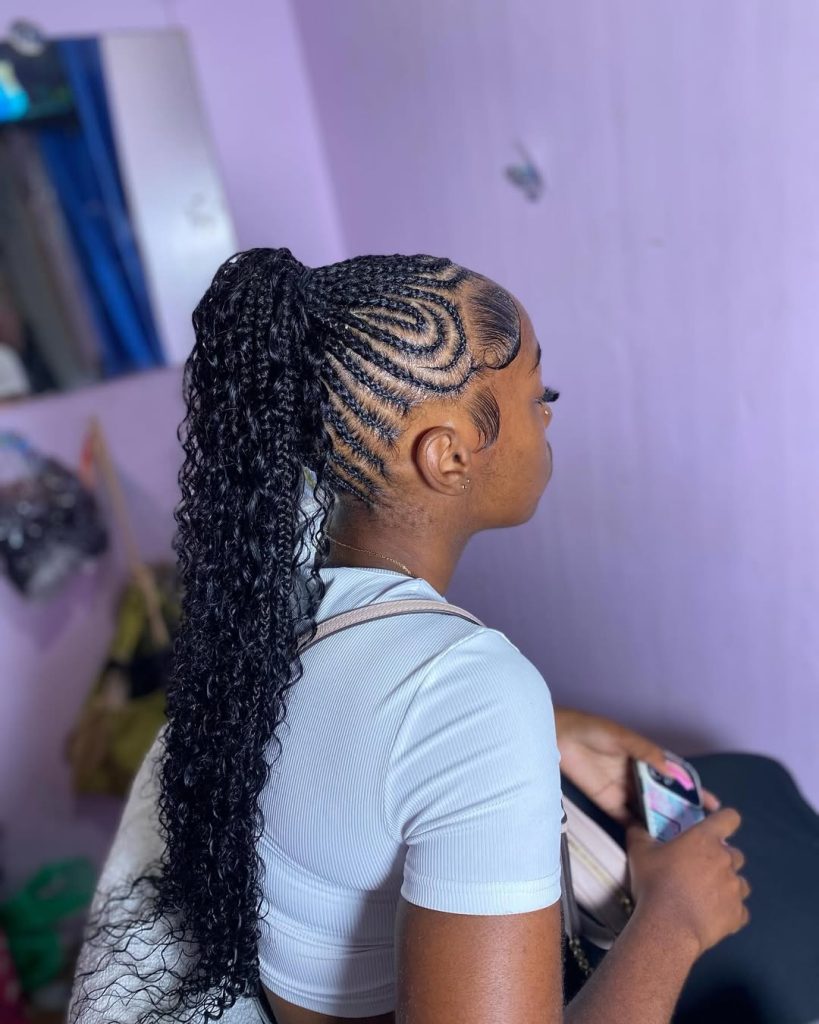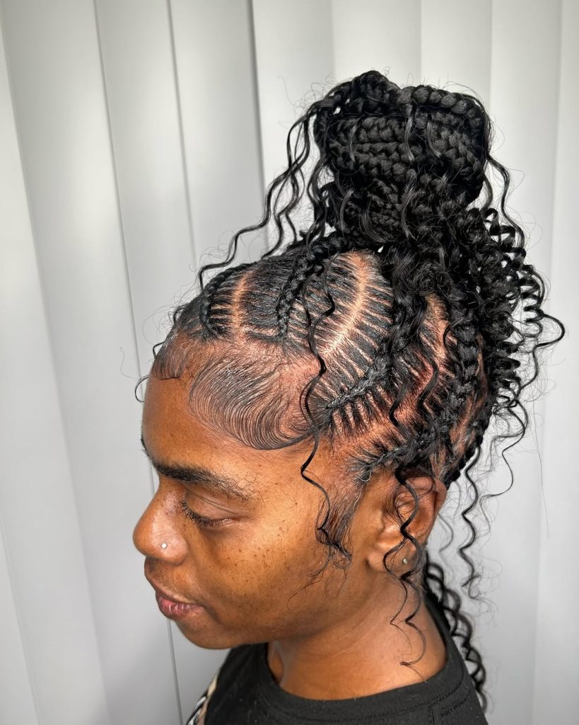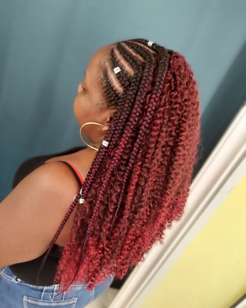 This style is the definition of effortlessly beautiful. The cornrows are neat and tight around your face and the curls below your chin bring movement to the rest of your hair. It’s easy to wear, looks stylish and you can dress it up or down for regular confidence and beauty.