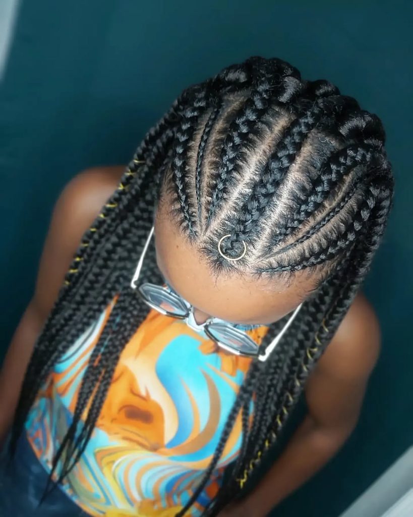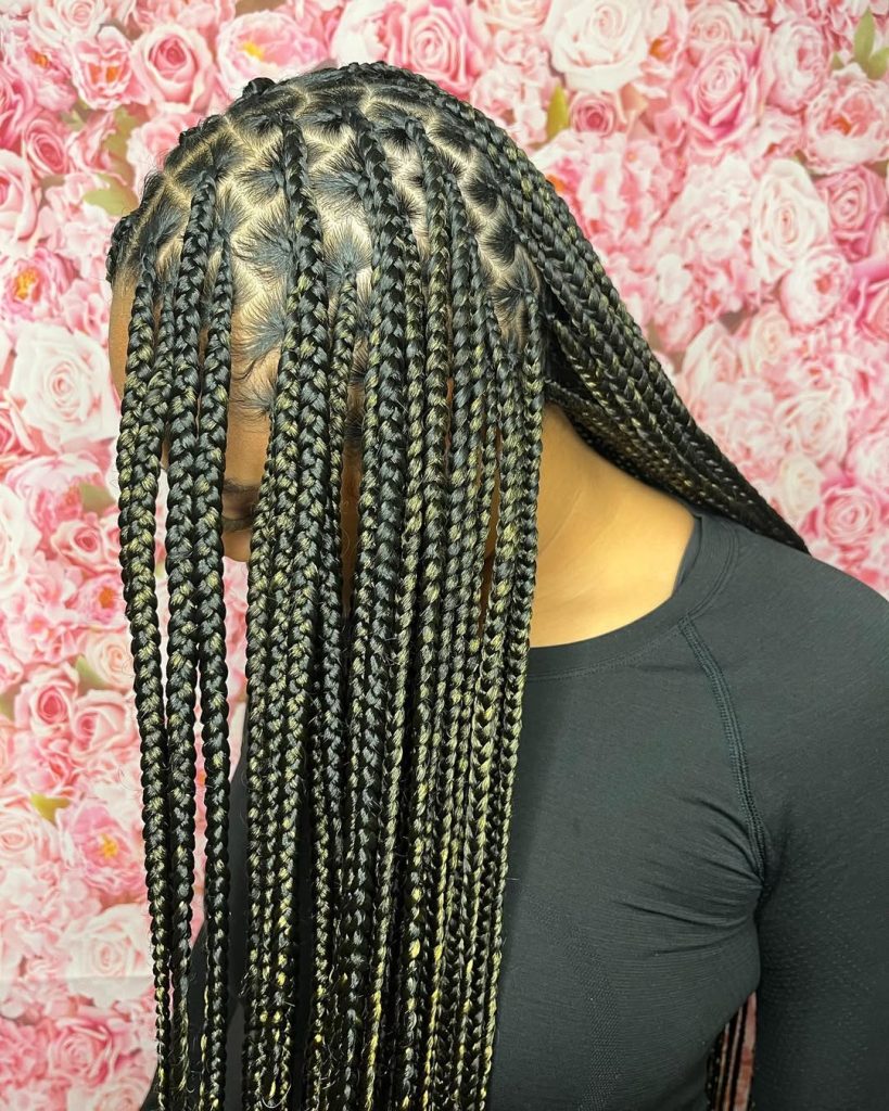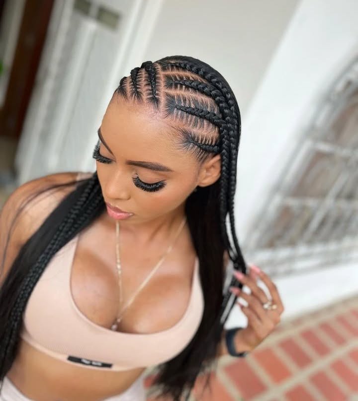 Ready to make a statement? These zig-zag partings are a modern masterpiece. The frequent pattern across the top attracts the eye, but the neat box braids hold everything together. The output is cleaned up and befitting 2025, adding a welcome graphic flavour.