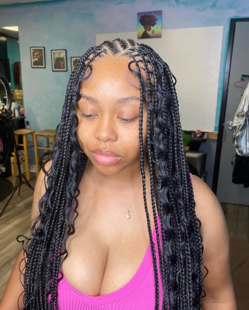 If you want a protected hairstyle that looks soft, this lengthy braided design is perfect for you. For medium to thick natural hair, it adds volume without being overly heavy. With curls, you get an enjoyable, bohemian air and you can wear them looking formal or just casual for a breakfast with friends. Definitely a standout for 2025 trends.