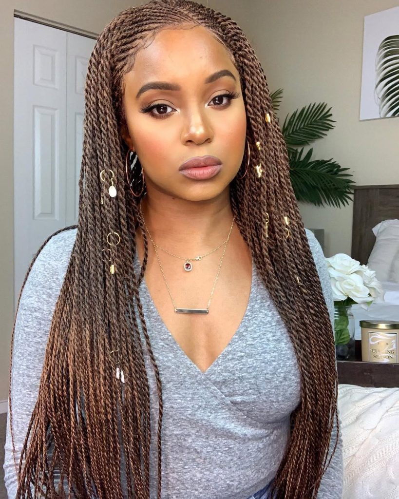 With their soft, smooth and charming design, these mid-sized rope twists are a classic favorite in the fashion world. Its color of chocolate and sophisticated accessories make this look gentle, yet remarkable. It looks elegant and stylish but doesn’t require trying too much.