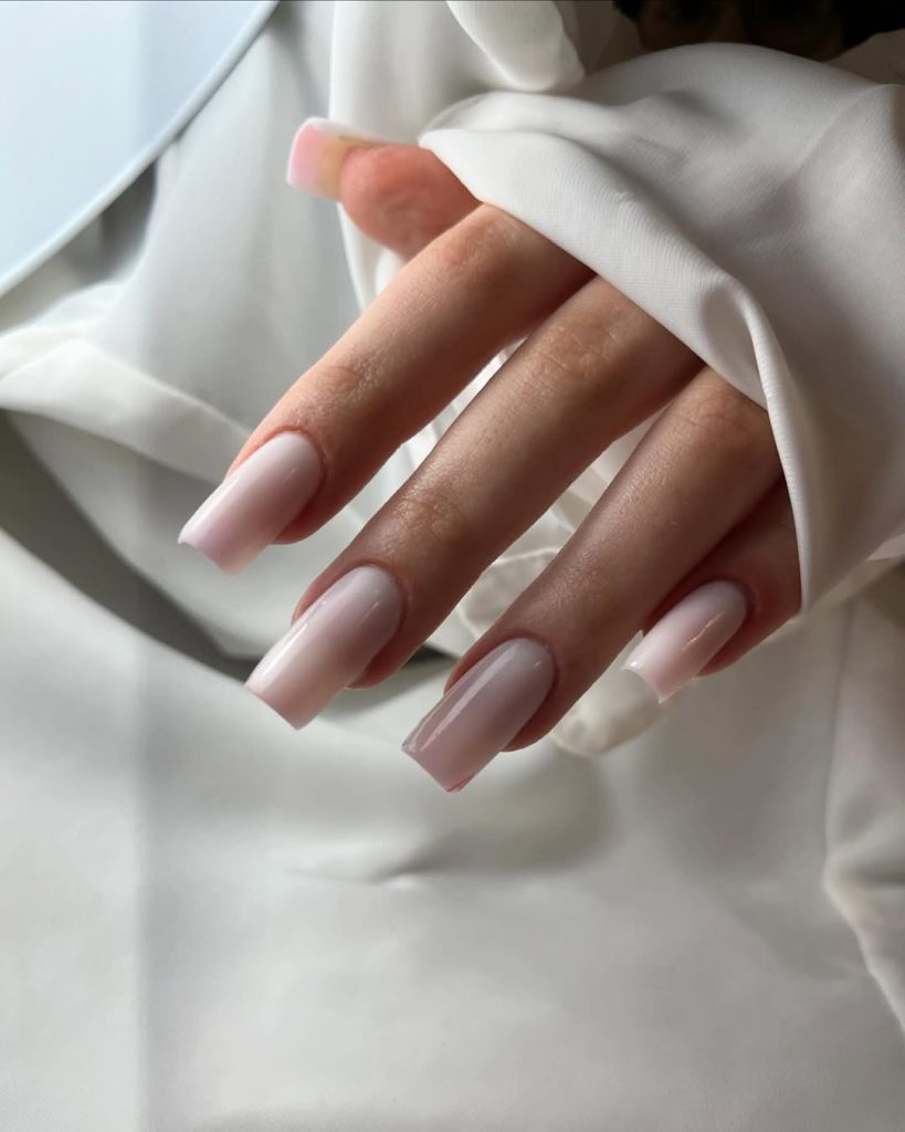 If your taste is natural-looking yet sophisticated this almond-shaped ombre manicure is just what you need. It beautifully covers a white and pink color in a barely visible transition. Supplementing Ukraine and Asia, gel application is a sign of durability and keeps a long-lasting, glossy shine throughout your trip that is always with you. This versatile design is suitable for outdoor and business settings, making it an ideal choice for any destination. The barely visible French effect at the tips of the nails adds old-school elegance to the look while making it trendy and bright.