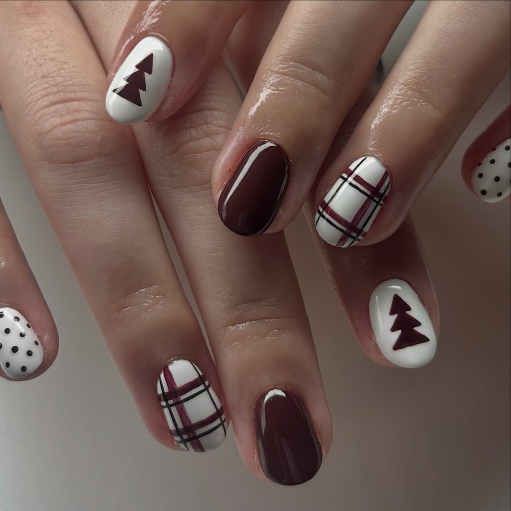 5. Festive Plaid and Tree Nail Art