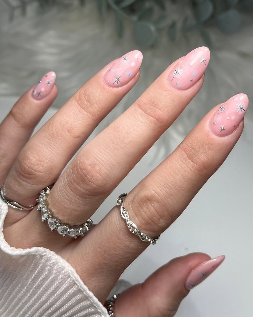 8. Pink Starry Winter Nails