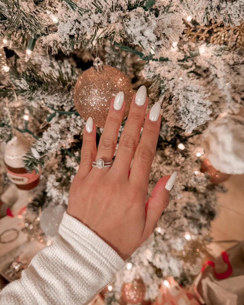 White almond nails are a flexible concept as a woman can have ideas that are easy to follow in their daily life and yet fancy enough to be used during the Christmas seasons. They are beautiful with cuddly knits and shimmering holiday decorations and thus are a go-to for seasonal wear.