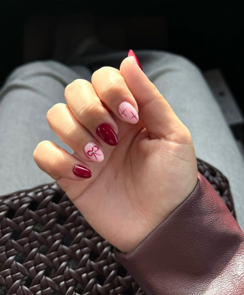 The oval body makes the appearance everyday-wearable, and the fun artwork makes them unique. An excellent option of ideas red nails that will be a balance between classy and cheerful in December 2025.