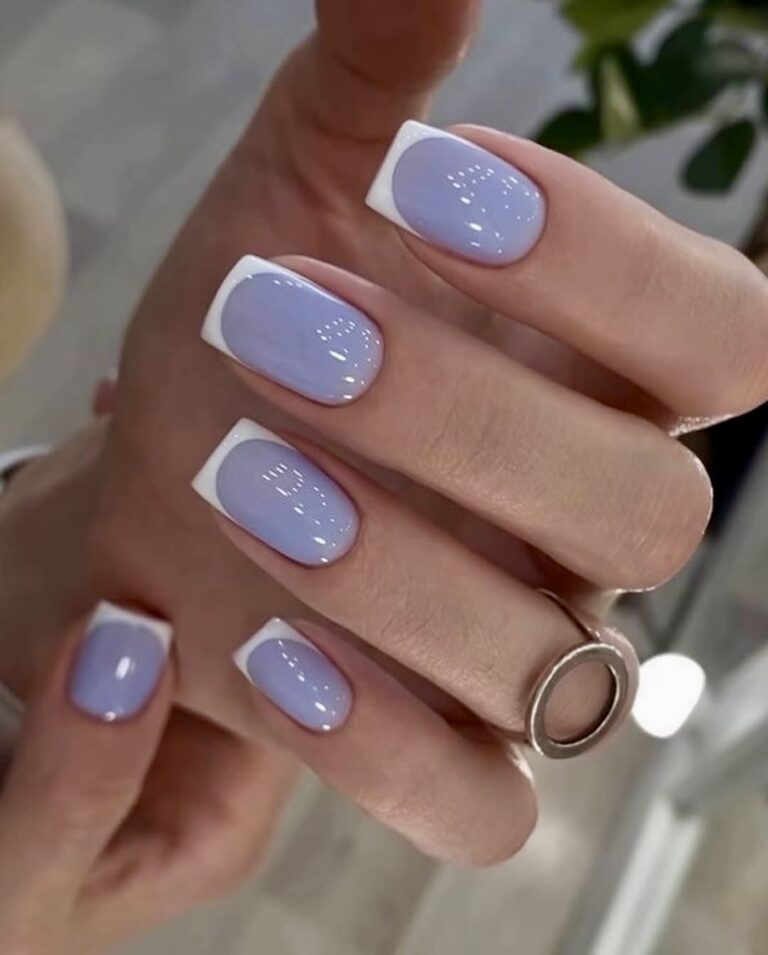 Soft romantic and whisper-light; this almond French manicure resorts to the lightest lavender colour for tips. The base is natural with a little beige warmth, providing the perfect background to the airy color. It is a perfect match for spring wardrobe palettes – think light-wash denim, linen shirts, layered gold jewelry, and more. This look adds a little pearl luminosity and makes your hands glow softly and seduce. You don’t have your hand hitting you in the eye due to a heavy luminescence.