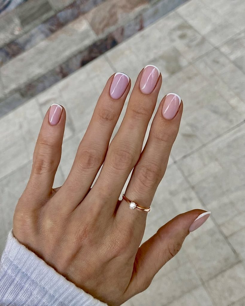 7. Short and Sweet French with a Glossy Pink Base