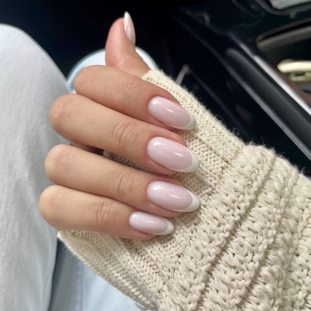 12. Almond-Shaped French with a Soft Touch