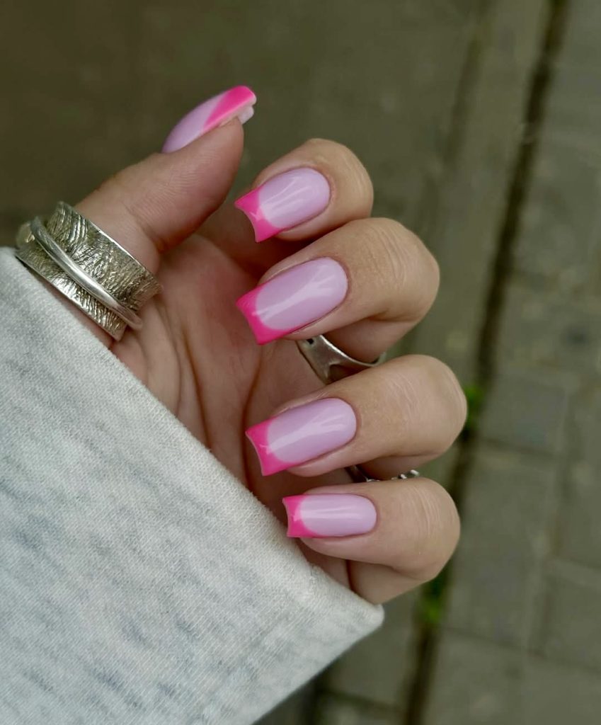 17. Casual Chic in Neon Pink Tips