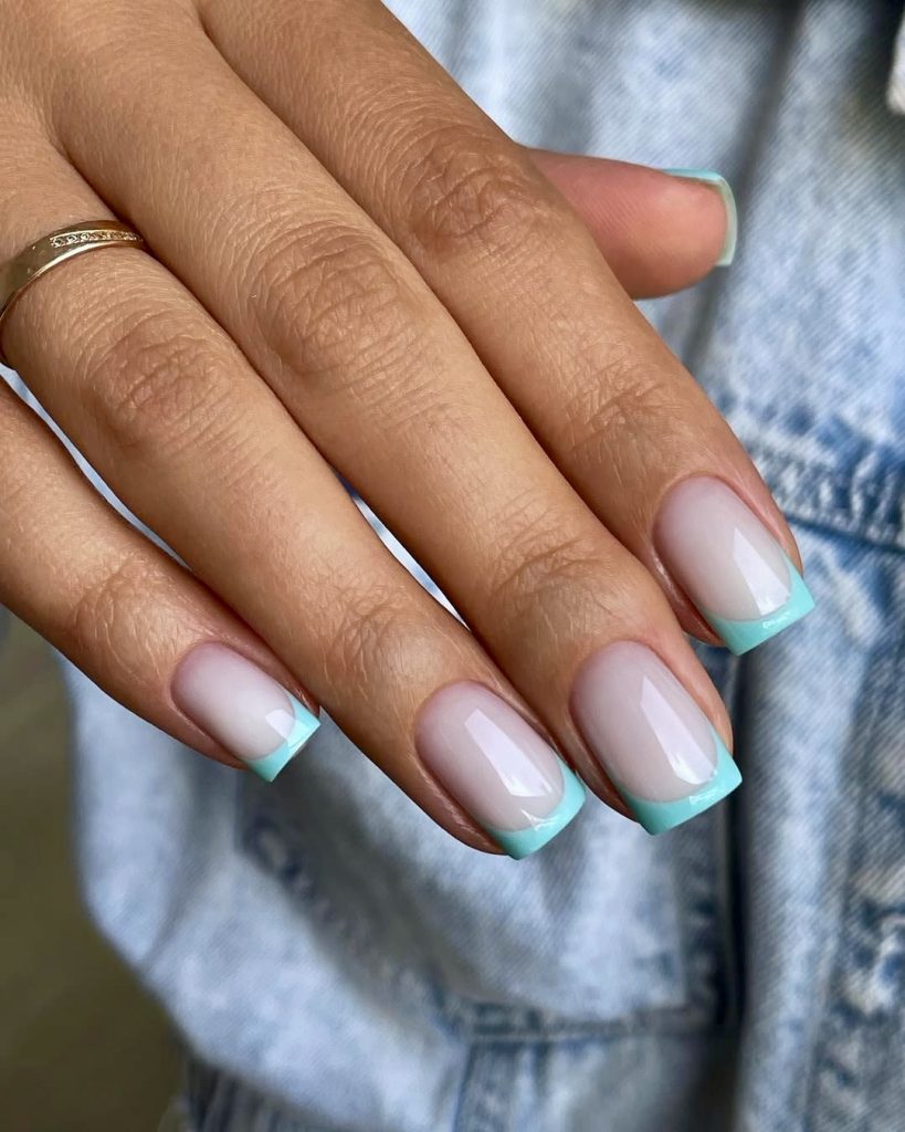 16. Minty Blue French for a Cool Pop of Color