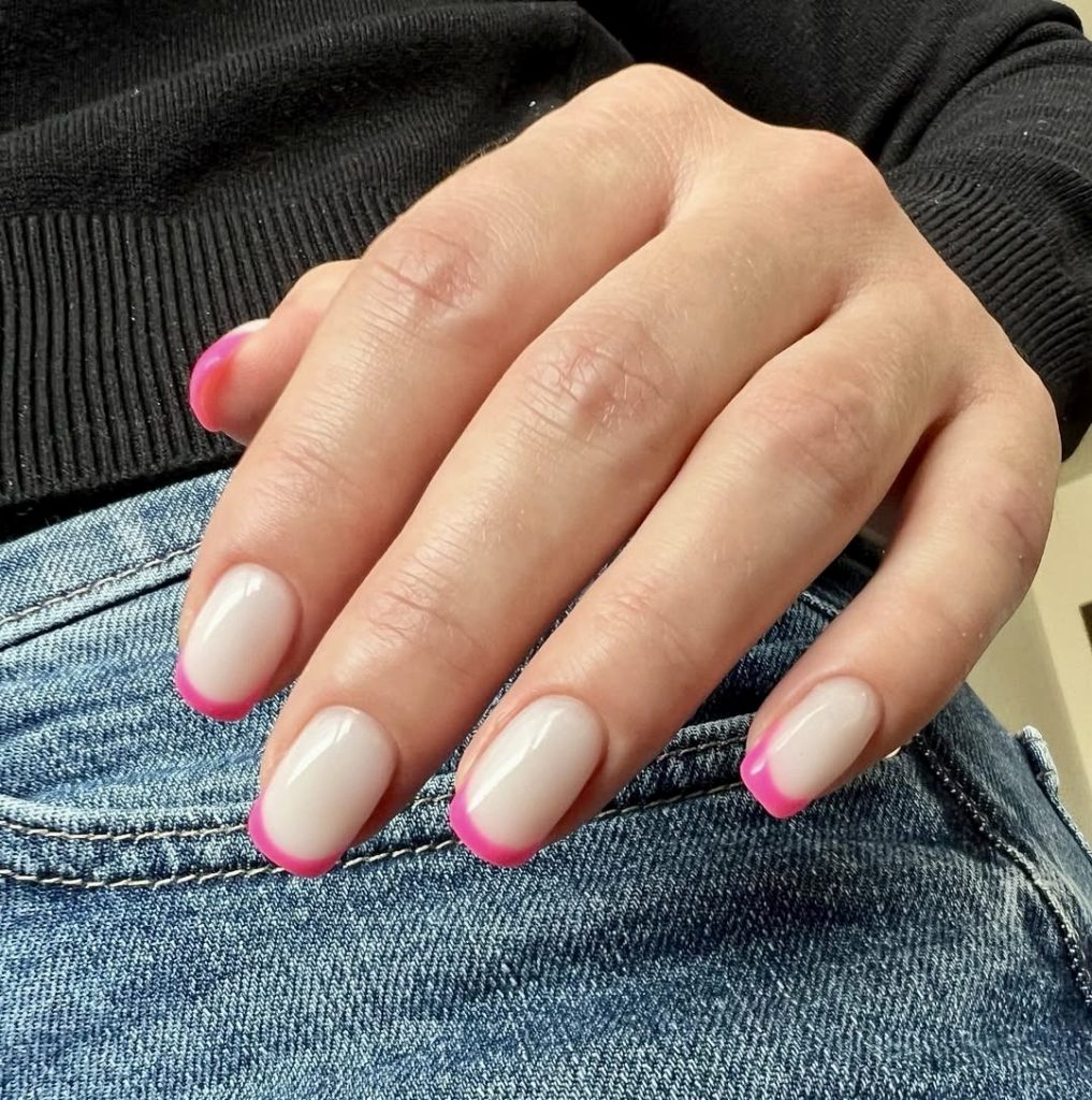 22. Bright Neon Pink Tips That Pop