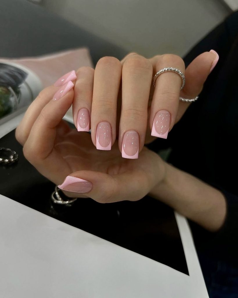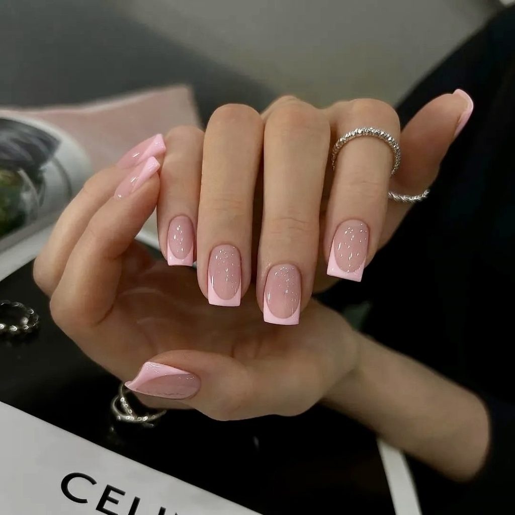 25. Pink Bubble French with a Glossy Finish
