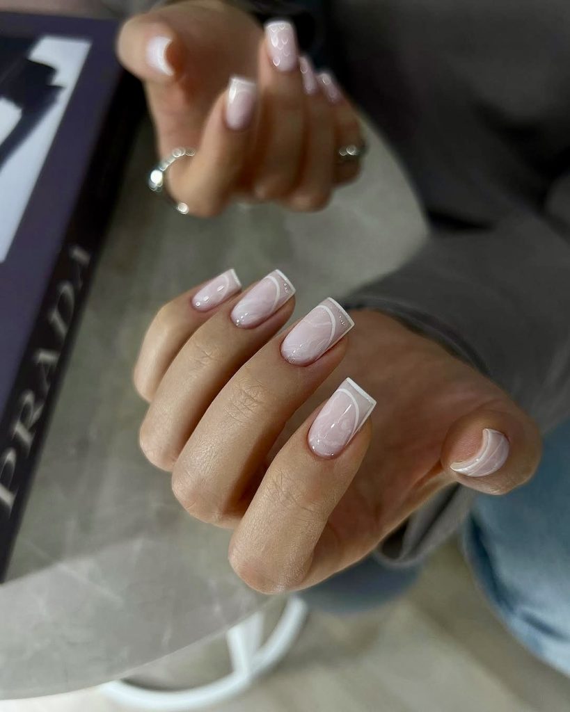 24. Swirled White French Tips with Subtle Texture