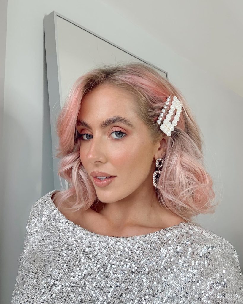 Overhead waves adorned with a pearl clip are definitely a nice choice for a gentle and romantic look. This hairstyle is excellent for the short curls or chin-length hair and can be worn at weddings, dinner parties, or even formal nights. The pearl clip not only adds a playful twist to the hairdo but also connects the contemporary style with the old-fashioned beauty.