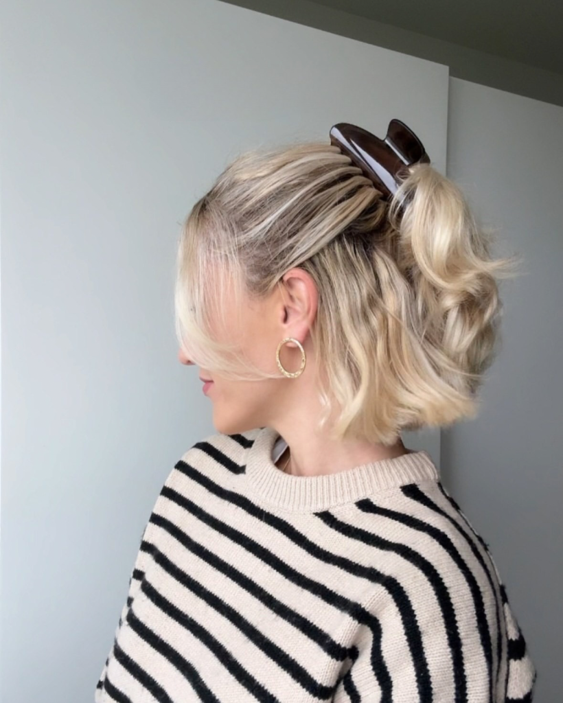 28. Casual Ponytail with Oversized Tortoiseshell Clip