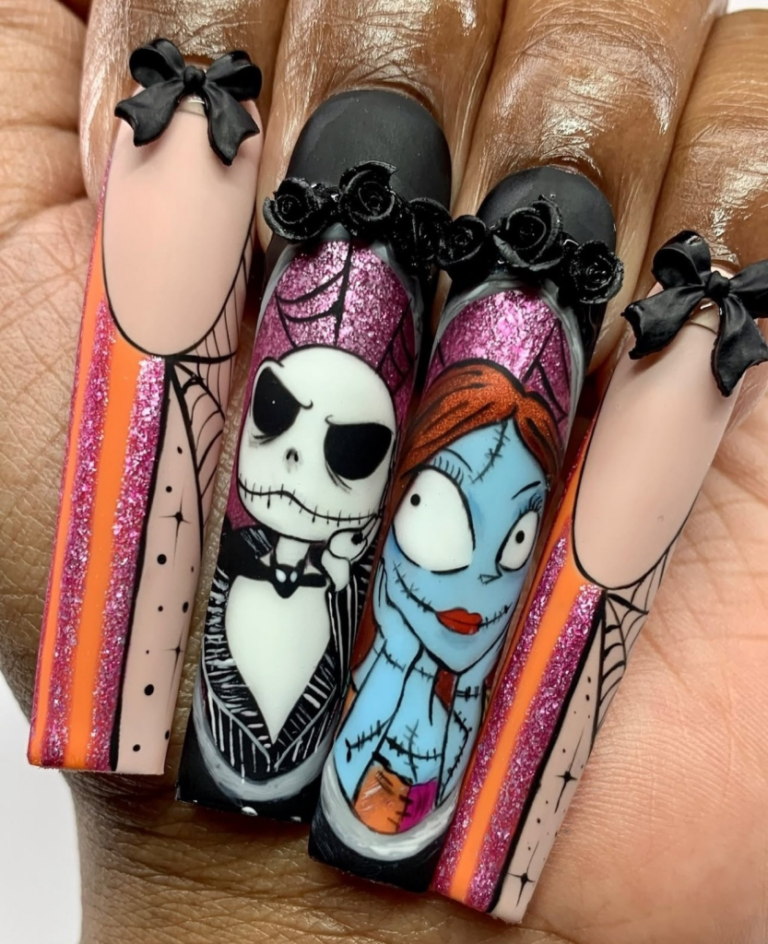 30. 3D Jack and Sally- Nightmare Before Christmas Nails