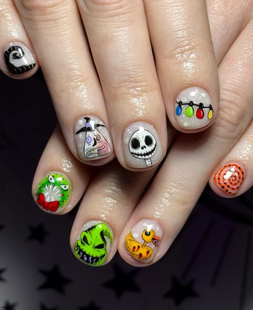 4. Full Cast Nightmare Before Christmas Nail Ideas