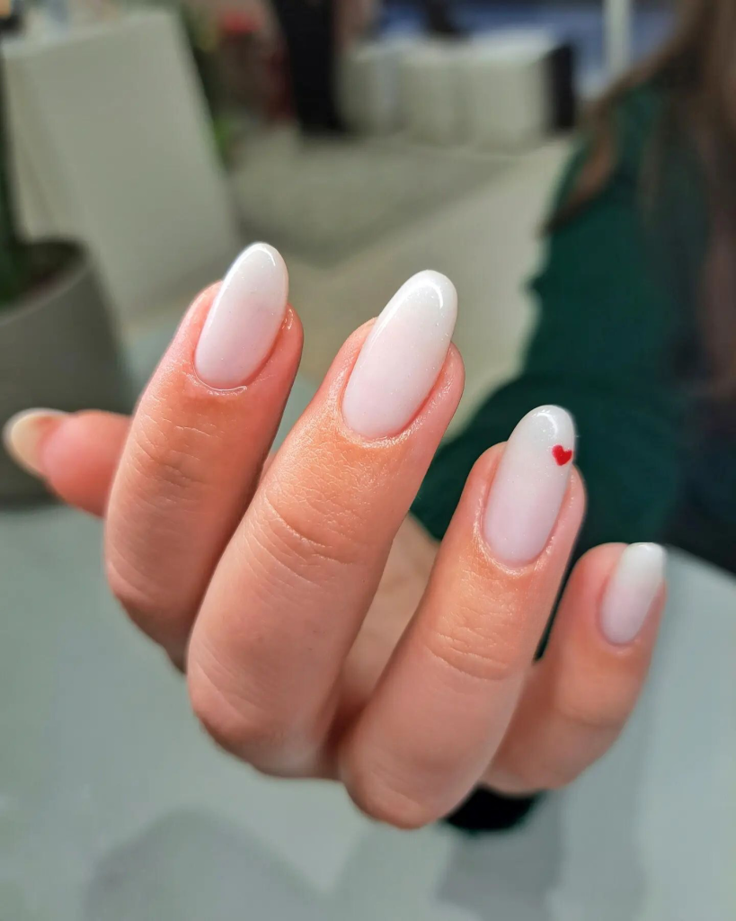 With their sleek, white oval structure, minimalism is not lost on these nails. The clean, and uncomplicated look gets an extra touch with a tiny red heart added to one of the nails, which will not overshadow the overall design. This discreetness is best worn during the winter and fall seasons since it gives a look that is clean and polished.