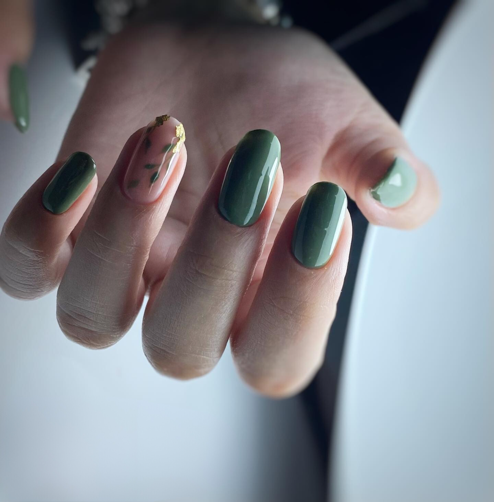 As nature-related designs will be very much in touch this year, this forest green set with a delicate floral accent nail is a perfect specimen of the trend. Dark green combines to be a classy and stylish color for you to wear in fall and winter. The floral design introduces a gentle and tender touch to the striking color, thus making these nails a good match with various clothes.