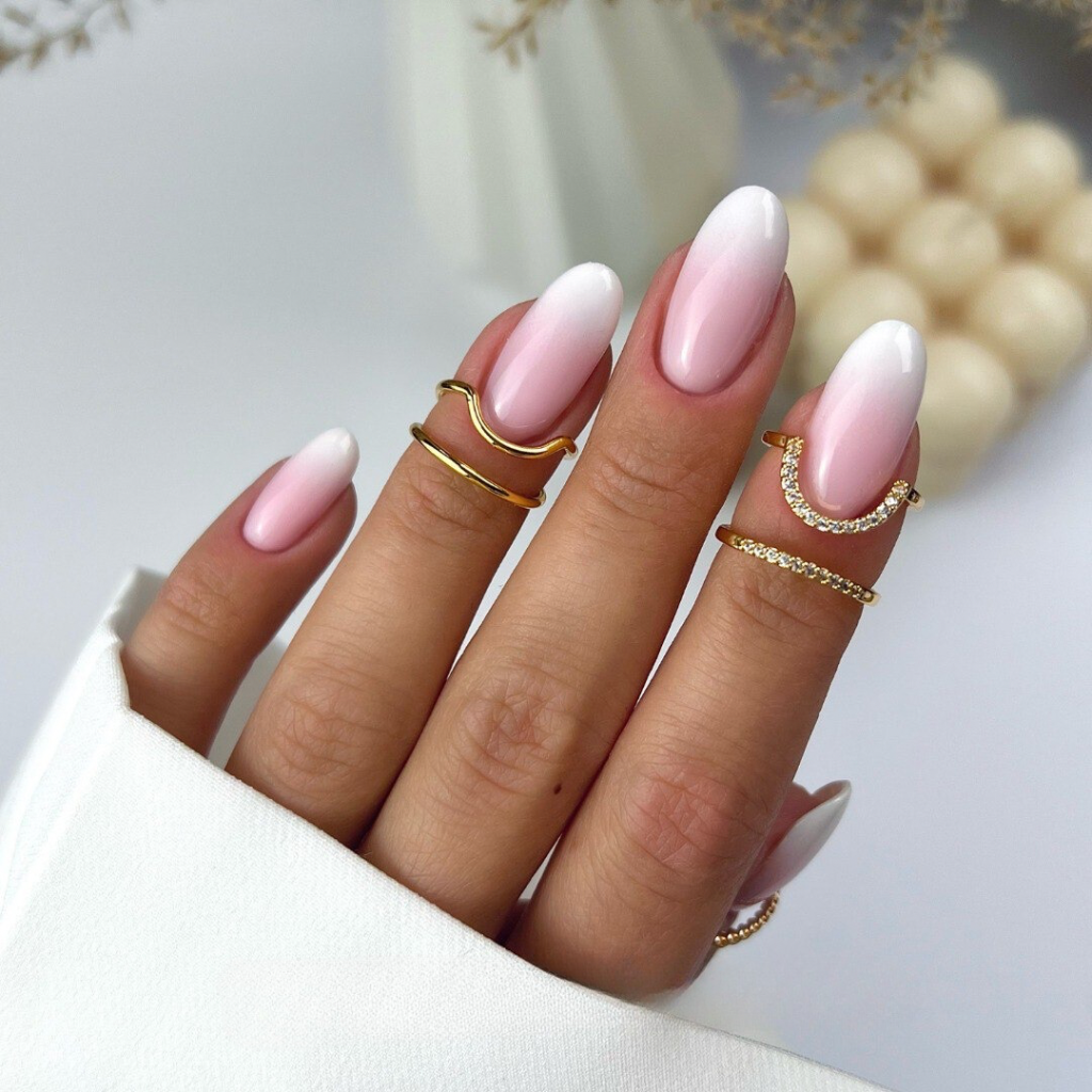 The transition gradient design that from a natural base to a soft white tip is really perfect thus, it is the first sophisticated & understated look. The simple and elegant style is suitable for any occasion, which makes these nails a versatile element in your 2024 collection. The medium-length accentuates the natural elegance of the oval shape.