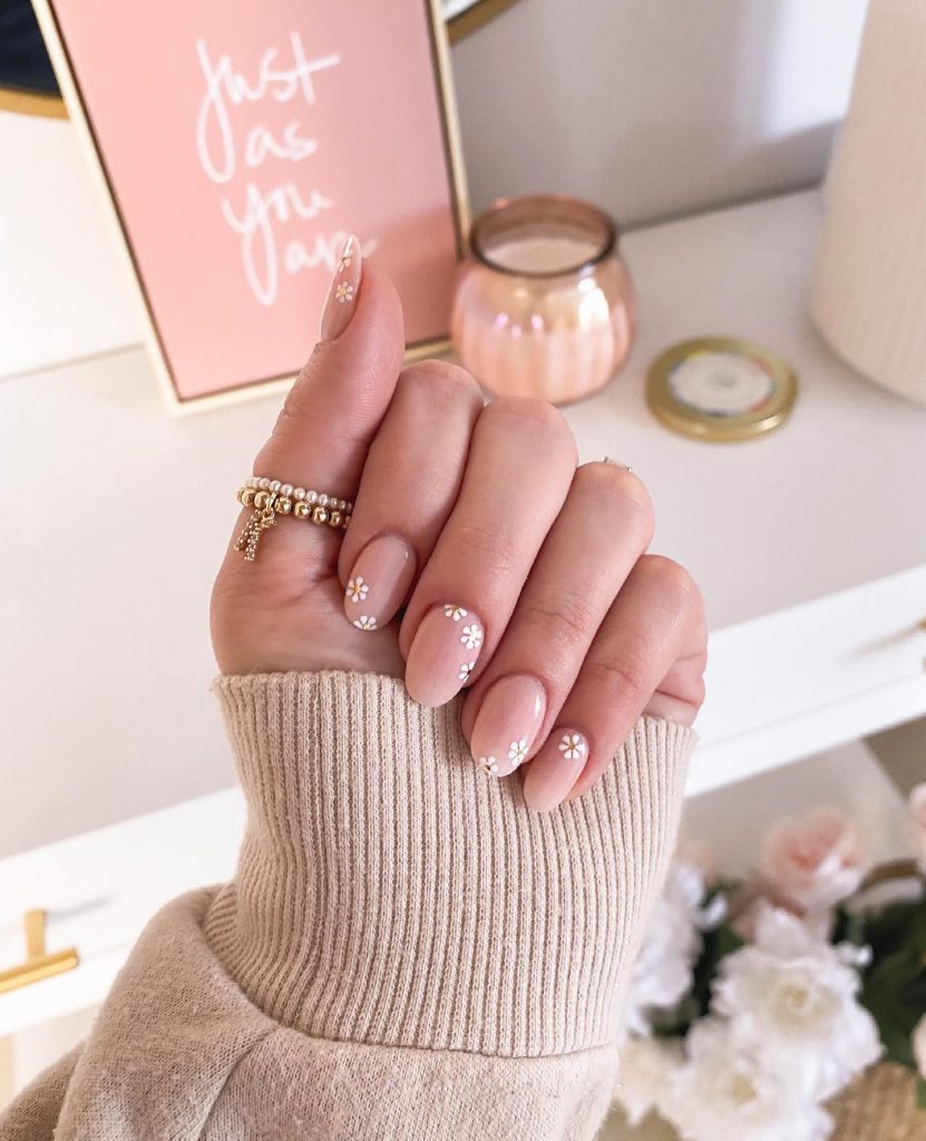 The nude base bringing in the daisy accents the spring mood to your nails. Small white and yellow daisies are inseparable from fine creations and teach you well to bequeath your feminine touch in the outside world. The medium-length oval nails suited the design with exquisite and serious taste. Daisy accents on a nude base is a good way of bringing the feeling of spring to your nails.
