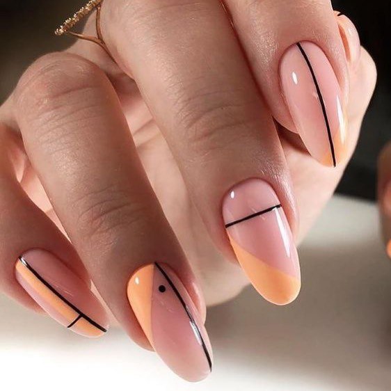To have a more trendy and artistic look, indeed, these geometric orange and black accents are a stylish choice that stands out. The mix of straight lines and forms makes a very active and modern style. This design is for the people who want to declare their personality with the nails, more so in summer.