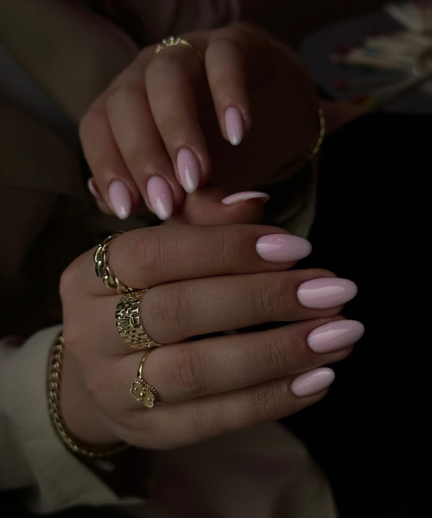 The warm and soft Ombré nails are trending, and they didn’t leave this soft pink version out at all. The flow from the natural pink to the bright tip makes it look like a dreamy, ethereal. These nails can be worn in spring and summer, and they are a cute and trendy addition to any outfit. The addition of gold rings brings the design to a higher level and thus also improves the overall look.