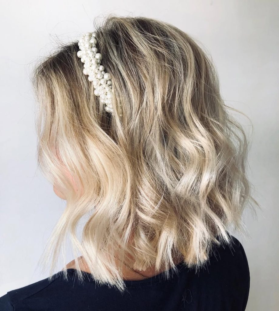 10. Textured Wavy Bob with a Pearl Headband