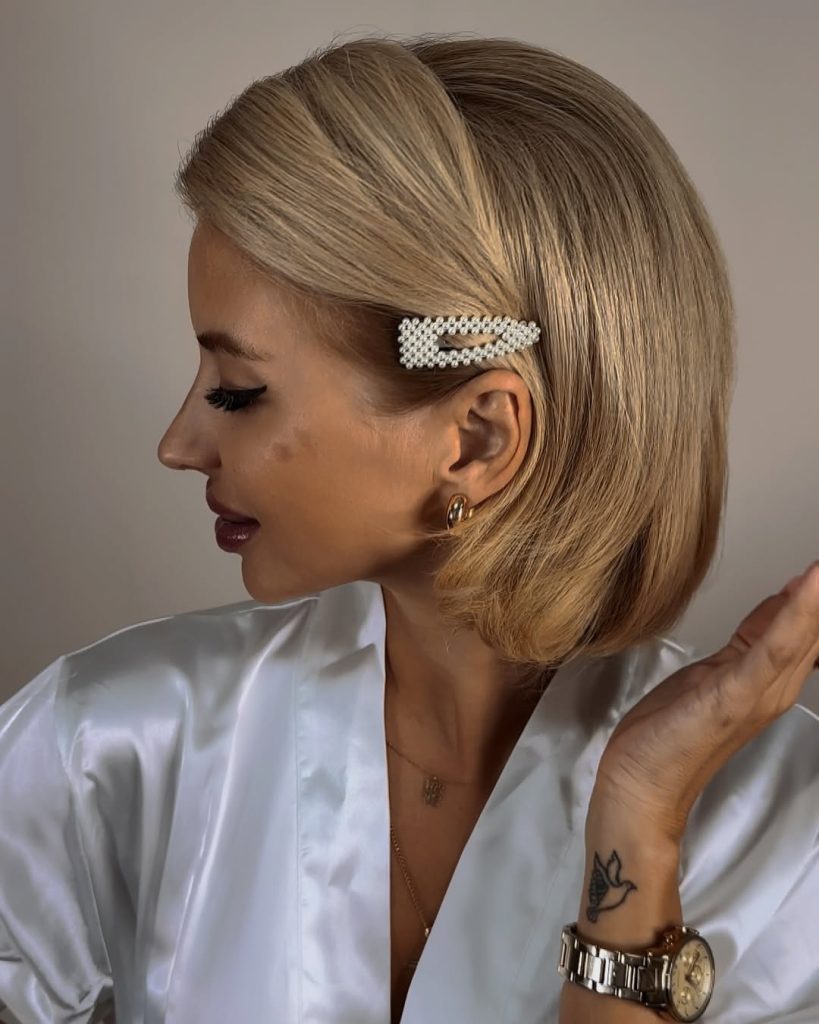 13. Classic Bob with a Pearl Hair Clip