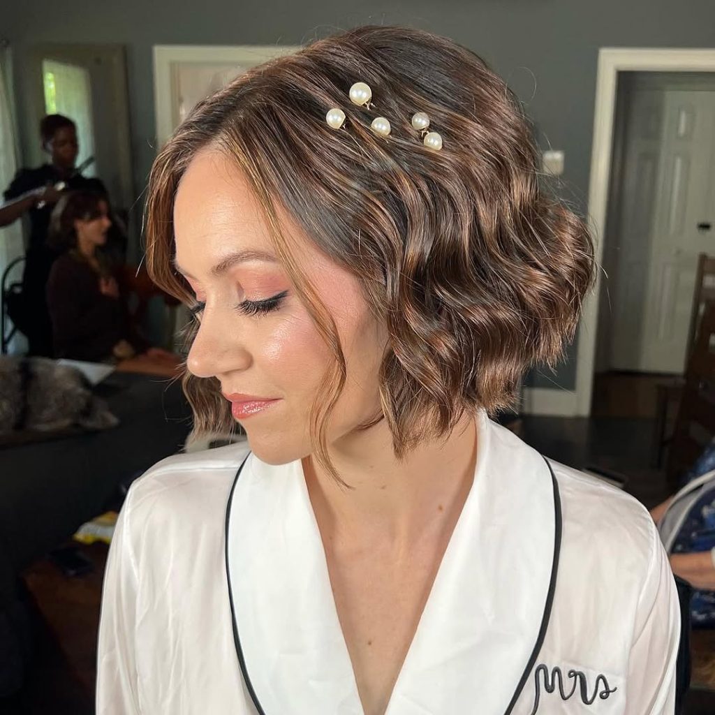 23. Short Bob with Soft Waves and Pearl Hairpins