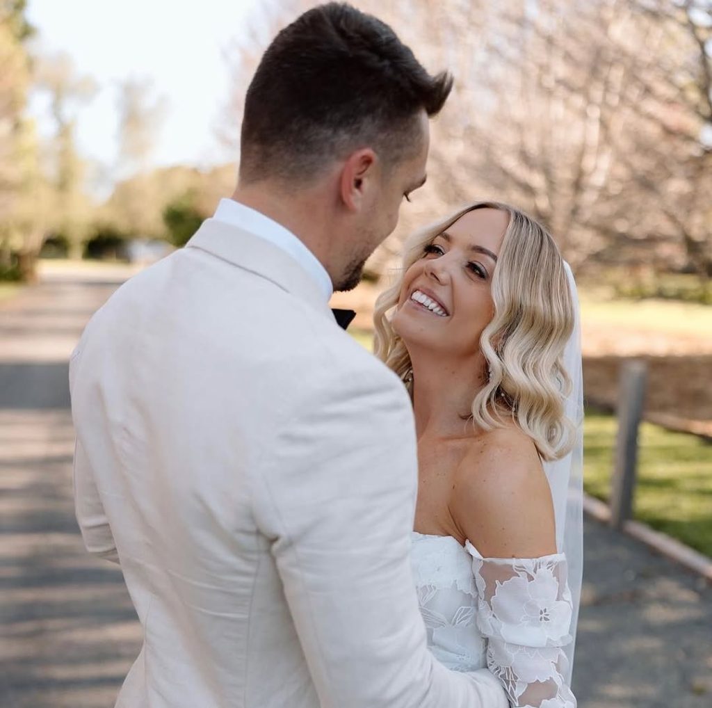 This bridal hairstyle is a clear reference to vintage Hollywood glamour with its waves that are both soft and structured, which perfectly frames the face. The deep side part not only enhances the vintage aspect but also makes it a perfect choice for brides who want to combine a sophisticated style with a casual romantic look. Blonde, brunette, and black hair also suit this style well, which looks amazing with or without a veil. A simple pearl earrings or a minimal tiara could add more elegance to the hairstyle.