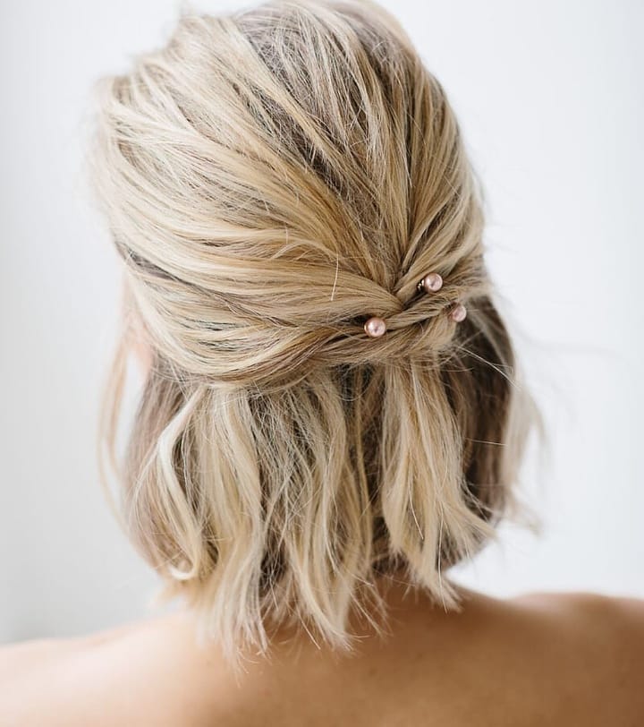 20. Half-Up Twisted Bob with Pearl Accents