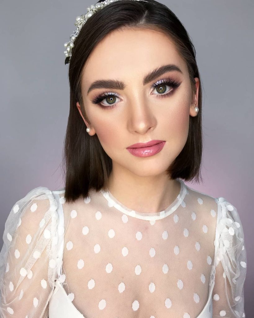 The straight bob is one of the great options for an elegant and modern appearance. The shiny, glossy appearance demonstrates confidence, while the pearl-the headband brings it a wedding theme. This hairstyle is for the trendy brides who love to wear it but it goes with blondes, black hair, and even brunettes equally well. Wear it with geometric or structured makeup with fewer accessories for a perfect modern-day wedding look.