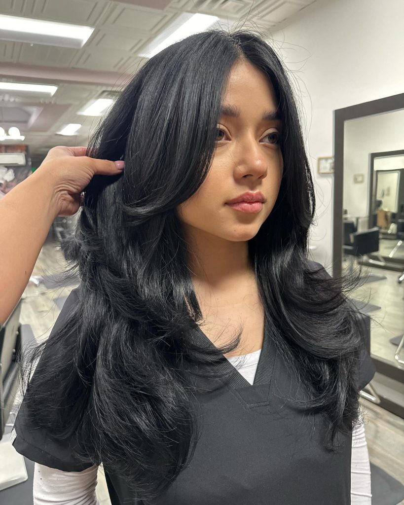 This hairstyle is a beauty of a blowout’s volume and movement totally. The layers are made to provide both structure and bounce, while the side-swept bungs frame the face elegantly, pulling the gaze to the eyes and the cheekbones. This haircut is fantastic for thick hair and especially fits on the medium to long hair lengths, it is the other choice for daily or festival wear.
