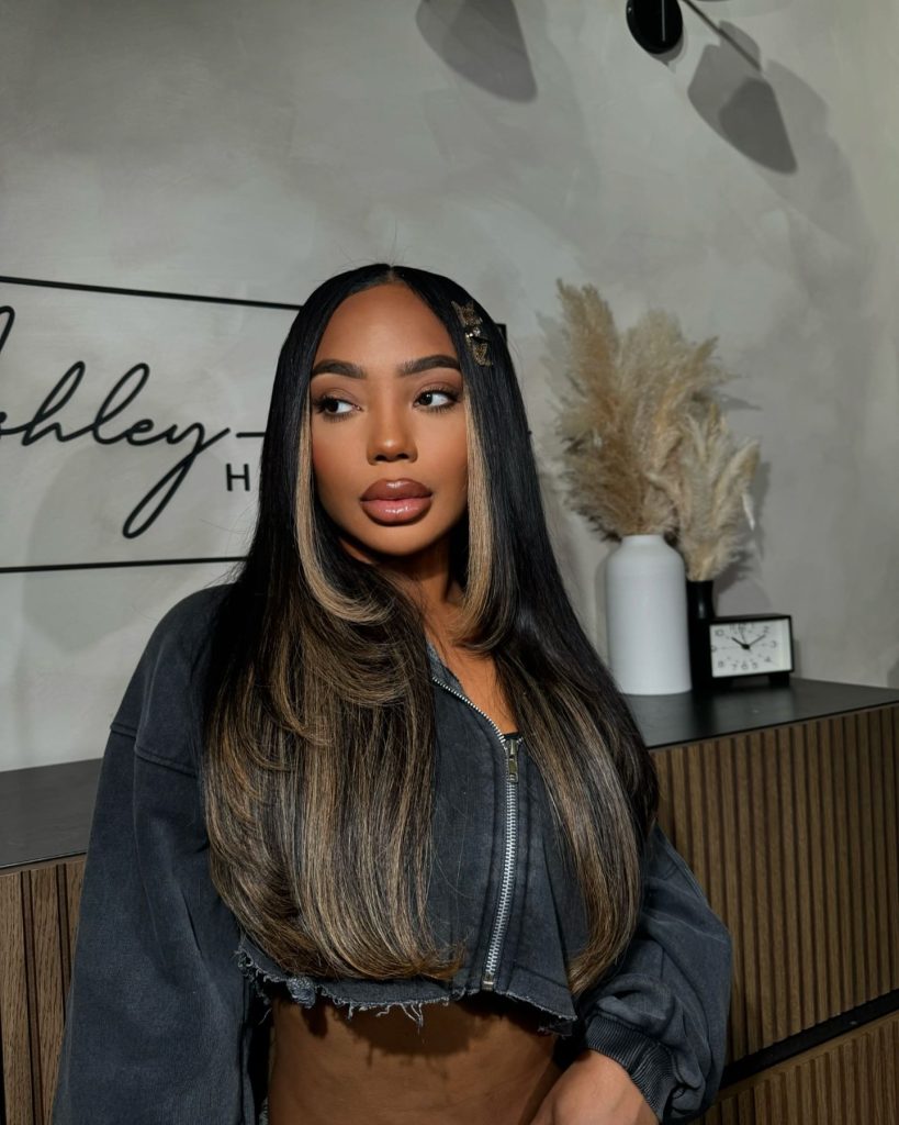 If you are the assertive one at the party, this style that has long parts of your hair with the addition of striking streaks to the face area is just for you. The use of opposite colors to mark the front parts of the hair is an added feature that gives an edgy look to the hairstyle. This style is primarily for women with long hair who want to add some colors and still carry the hairstyle well in a sophisticated way. The addition of the face-framing layers is bold; therefore, it fits to be worn in a trendy style in 2025, while the overall length of the hair provides versatility and easy maintenance.