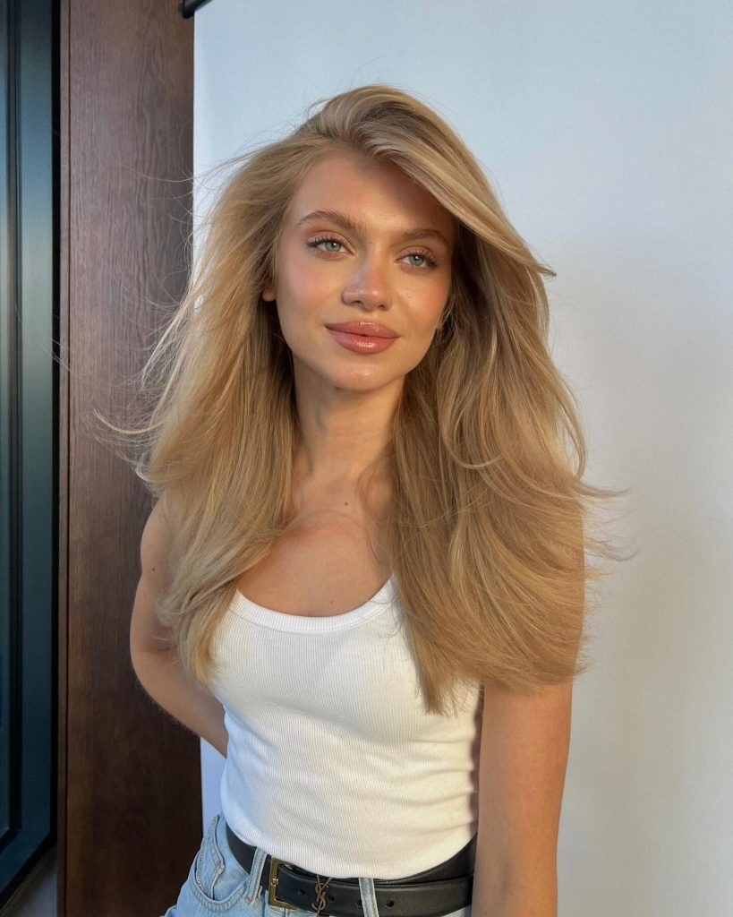 The blonde, layered haircut is perfect for you as it showcases your natural hair thickness while still looking airy, wind-blown. The layers give a super light and feathery effect to the hair, making it ideal for women with long hair who want to achieve the volume without the hard work. The gentle, misplaced curls give it a charming touch of freshness and youth and are, therefore, a great way to make a round face look longer. This hairstyle is typically and effortlessly stylish for a woman who is keen on fashion in 2025.
