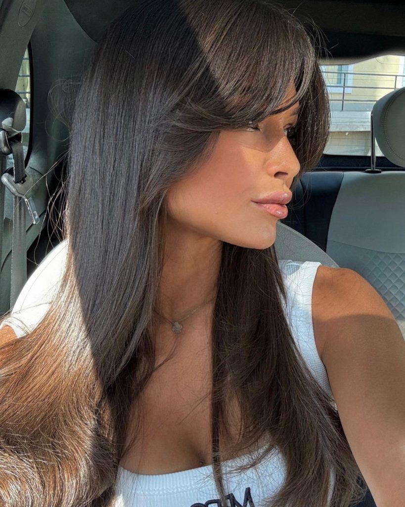 7. Sleek Layers with Face-Framing Bangs