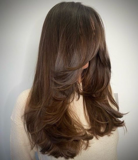 This hairstyle that is long is the combination of the shiny and voluminous layers with the almost invisible color changes that come in to add the depth and the movement. The highlights give it a sun-kissed look, which is a great way to add thickness to your imagination. It definitely suits those who prefer long layers that seem to be full-bodied and are easy to handle. The layers pretty much cover the face, making it appropriate for all kinds of faces, especially round ones.