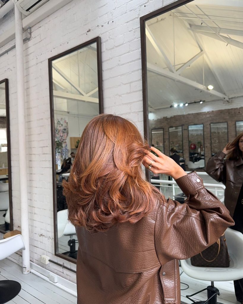 This layered and voluminous medium cut presents an option to create a body and dimension for thick hair. The heavy copper pigment shadows it with unique warmth, which adds the style more personality and vivid colors. The layers are cut and styled for the best floor, which is the best option for women with the naturally thick hair who like the bold and lively look. The length and layers give options for both the everyday style and the formal setting look.
