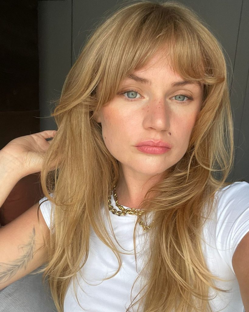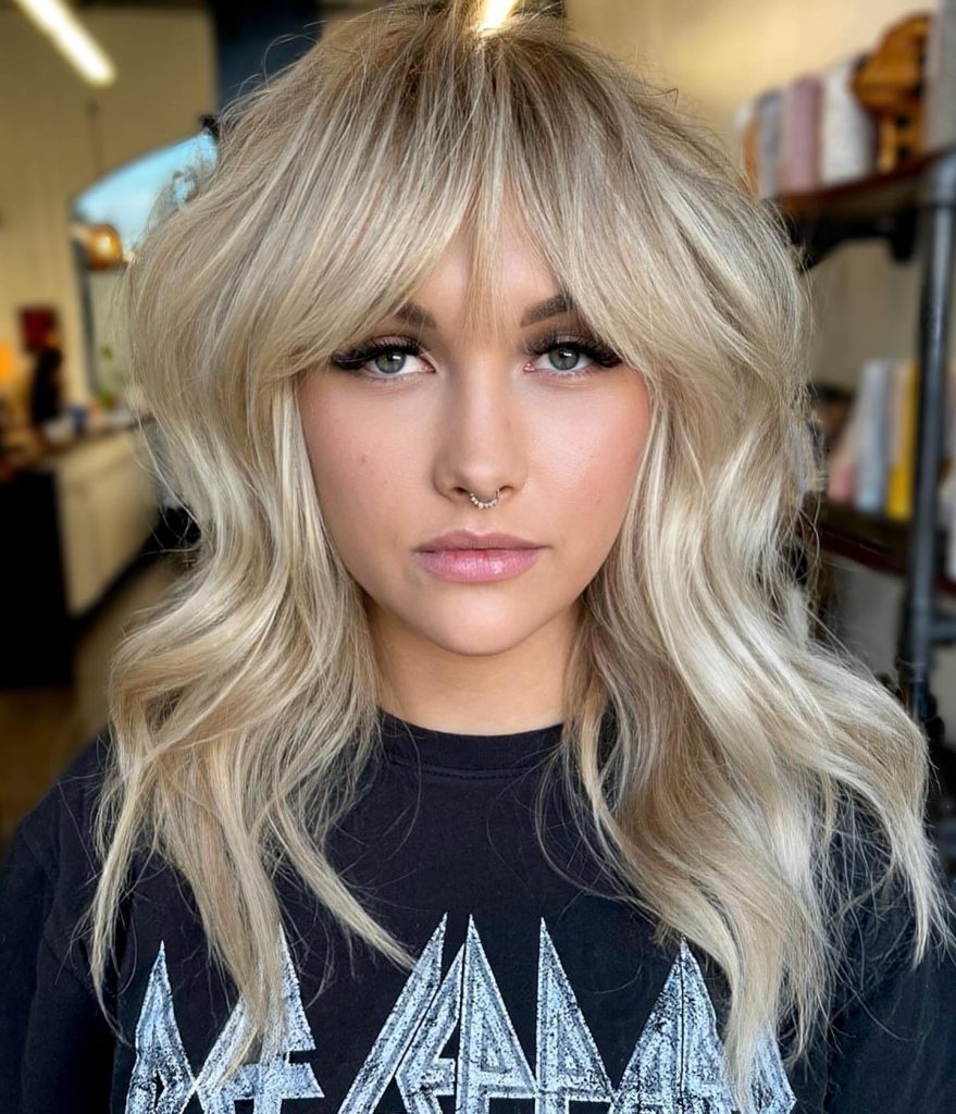 This hairdo is a perfect mix of style and volume with shaggy layers and wispy bangs. It is an ideal pick for women with mid-length to long hair who want to add thickness and volume to their hair. The bangs, which are light and airy, are layered seamlessly into the hair, therefore creating a popular among the fashion-forward women Y2K aesthetic. This hairdo is very easy to carry, thus, can be worn at school and casually but its appeal is still good for a formal event. Combine it with light makeup only for a fresh and youthful look.