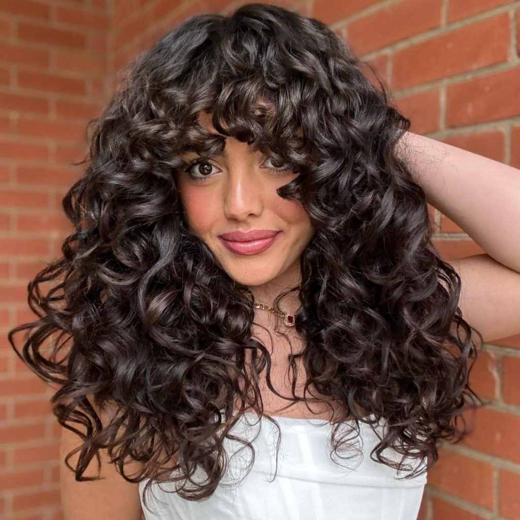 This particular hairdo is an eternal tribute to the naturally curly 3c hair with the rounded full bangs that flow into the rest of the hair. It is a conspicuous mode of wear and it truly enhances the attractiveness of the curly fabrics, bringing the addition of character and fullness. This hairstyle that is a sentence in itself is meant for girls who naturally curl or to afro hair. It is a look that can be worn anywhere, be it a casual day out or a formal event, combining style with practicality. The bangs that form serve as a spotlight for beauty and the curls contribute to a lively movement, thus, it’s an awesome option for a lovely, vibrant hairstyle.