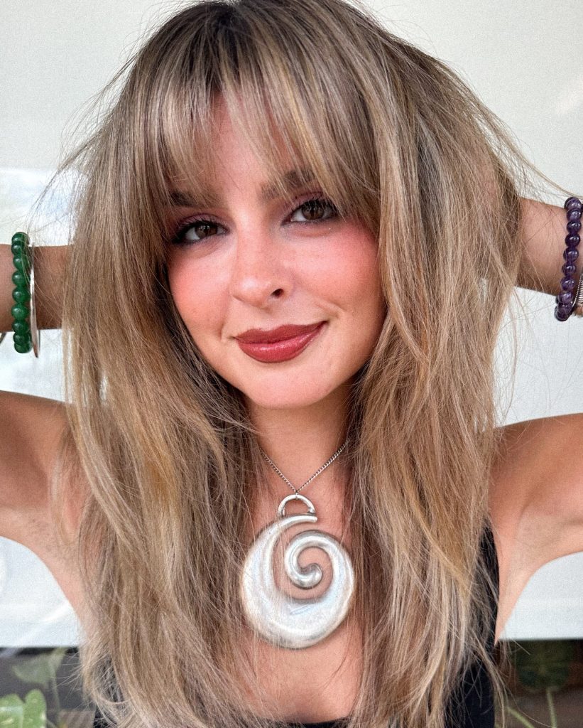 8. Voluminous Shaggy Layers with Wispy Bangs