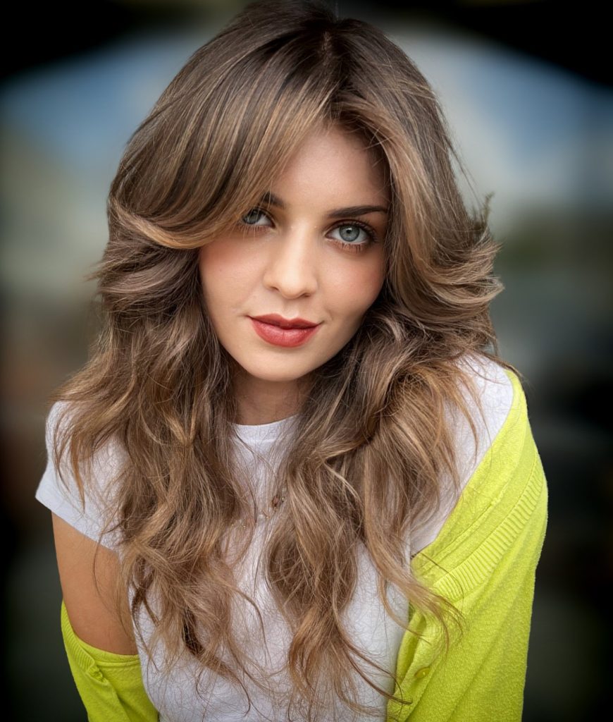 This voluminous, wavy hairdo with the curtain bangs really is a glamorous and totally easy-to-style thing. The curls present a fluffy feel, while the curtain bangs tenderly shape the face. Being a long hair style is the key to this adding body and motion to the hair and thus it is suitable for casual and formal events both. This is a multipurpose and long-lasting choice, which makes it a natural look but with a little bit of elegance.